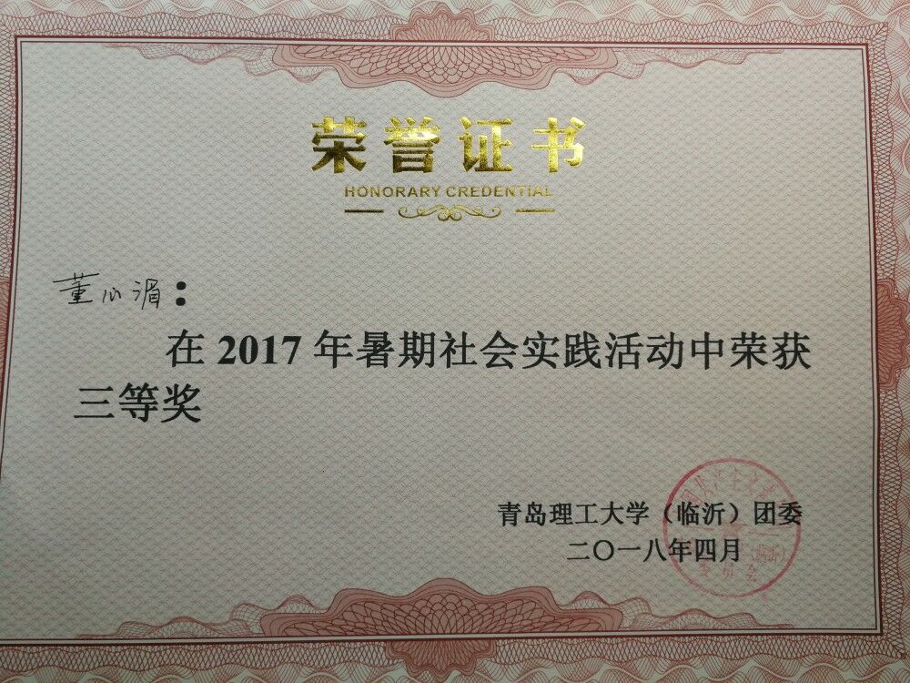 在工作中,她有较强的责任心和集体荣誉感,作为班长积极帮助学习困难同学,在班级中成立学习小组帮助他们提高成绩、解决困难。积极开展班级主题教育班会,帮助老师较好的管理好了班级。积极参与2017级迎新,并担任2017级会专业班级助理,帮助他们解决初入学的困难,并获得77779193永利集团优秀班级助理员称号。在暑期,积极响应国家号召作为带领专业同学参与暑期社会实践活动,在此期间解决大大小小的各种问题,小到队员住宿饮食,大到联系相关村委人员,都有条不紊。天道酬勤,一分耕耘,一分收获,通过团体的不懈努力,在校内获得团体三等奖,以及个人暑期社会实践优秀学生称号。