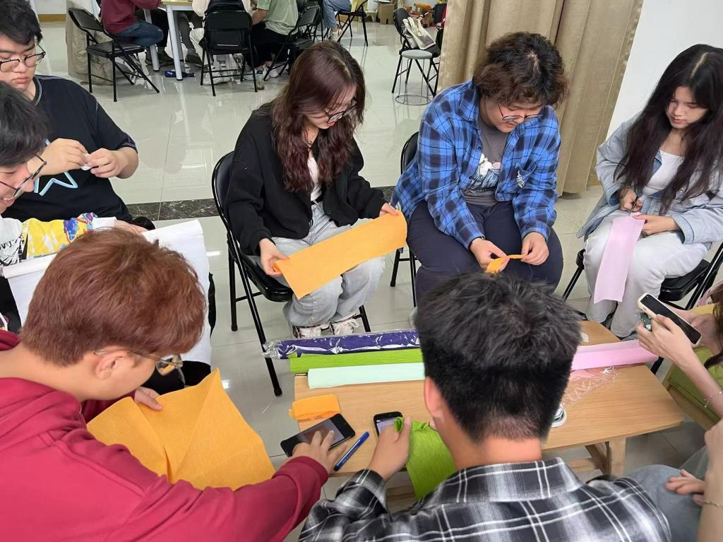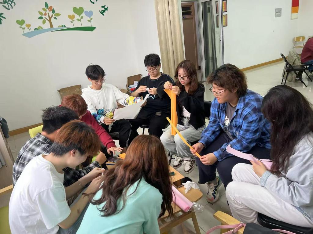 为塑造健全人格,丰富精神生活,促进同学们的身心全面健康发展,环境与市政工程学院绿蕊心理协会于5月21日下午在心理活动室开展以“剪纸”、“团扇”、“纸艺花”为代表的心理美育活动。同学们通过制作传统手工艺品,提高审美能力和动手能力,促进心理健康。
