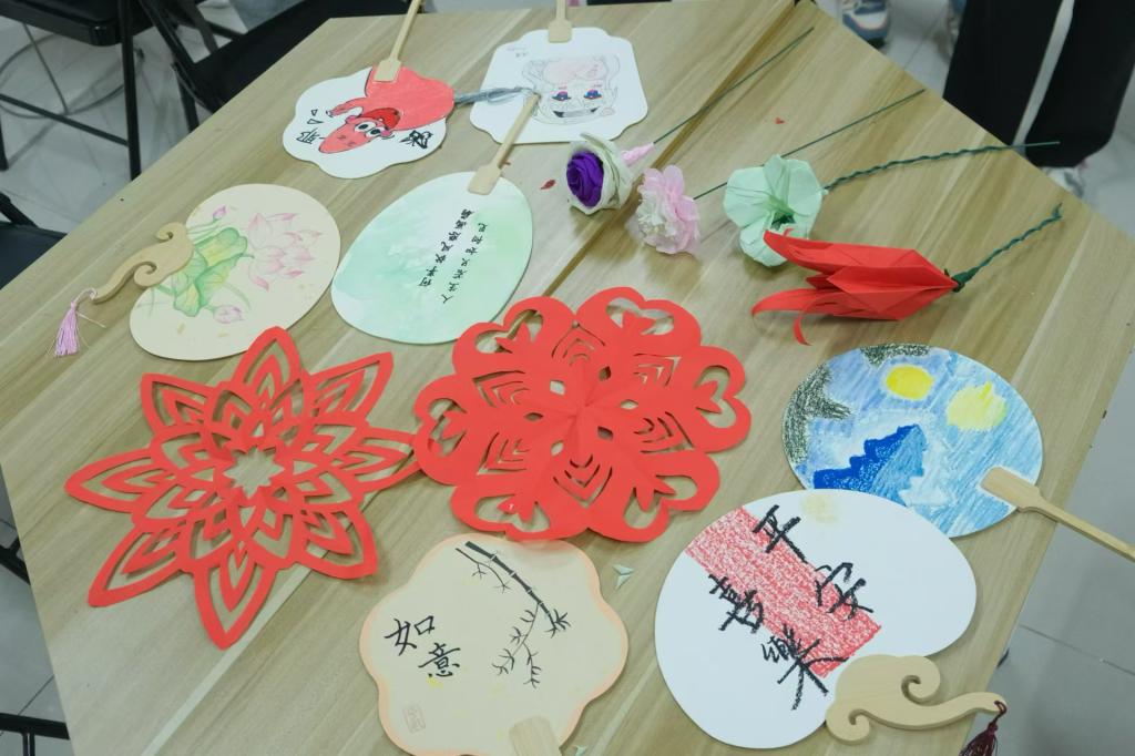 轻执团扇、诗意满怀。一场别开生面的团扇DIY盛宴,同学们尽情发挥创意和想象力,使用彩绘笔亲手制作出属于自己的团扇作品。在炎炎夏日,手执一把团扇,不仅是为了驱散暑气,更是一种文化的传承与生活的艺术。团扇在手中轻轻转动,每一次挥动都是对传统美学的致敬,每一次停歇都是对静谧时光的品味。