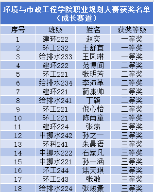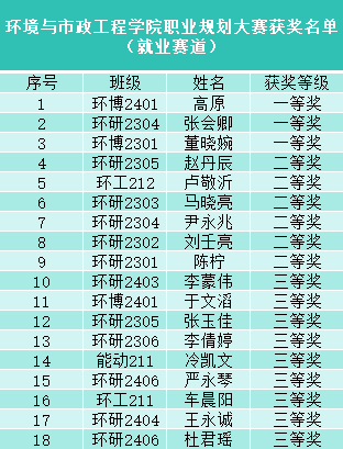 经过激烈的比拼,最终环博2401班高原获得校级就业赛道二等奖,建环222班赵奕获得校级成长赛道三等奖。