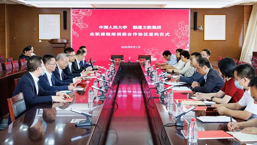 6月1日,融通文教与中国人民大学国防和军队建设领域人才培养专项合作协议签约仪式在中国人民大学举行。融通文教党委副书记、总经理曹国旺,中国人民大学党委副书记、副校长胡百精分别致辞。融通文教党委委员、副总经理伏睿与中国人民大学党委委员、副校长叶康涛签署合作协议。