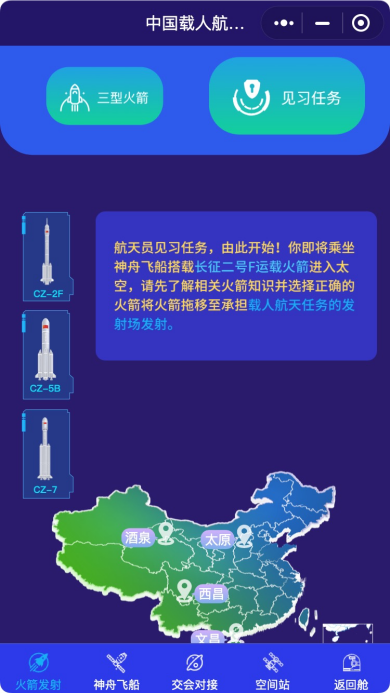 展览为每位观众设定了见习航天员的特定身份,鼓励见习航天员们自主前往不同展览板块,了解火箭发射、神舟飞船、交会对接、空间站以及返回舱等不同阶段的任务内容。