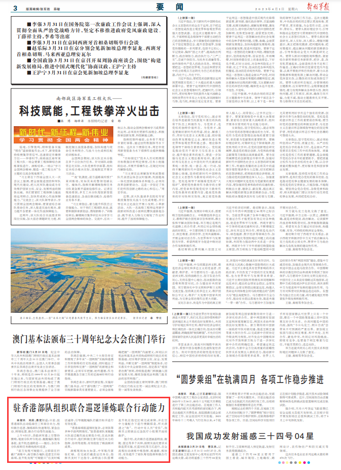 解放军报讯 刘应、易定报道:日前,驻香港部队出动陆海空三军部分兵力,组织联合巡逻,锤炼部队快速筹划、紧急出动、特情处置、联合行动等作战能力。